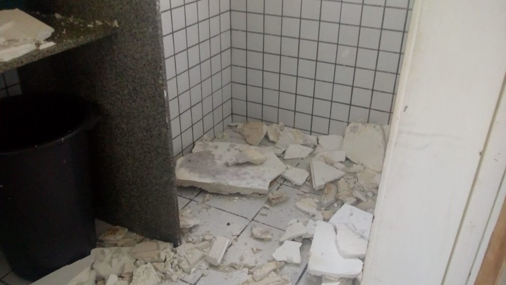 A paciente estava se preparando para tomar banho, acompanhada de uma filha e uma amiga, quando o teto do banheiro de um quarto do setor de Ortopedia 2 caiu sobre as três. O forro do banheiro atingiu a cabeça da paciente e acabou ferindo o braço dela. As outras duas mulheres não ficaram feridas.