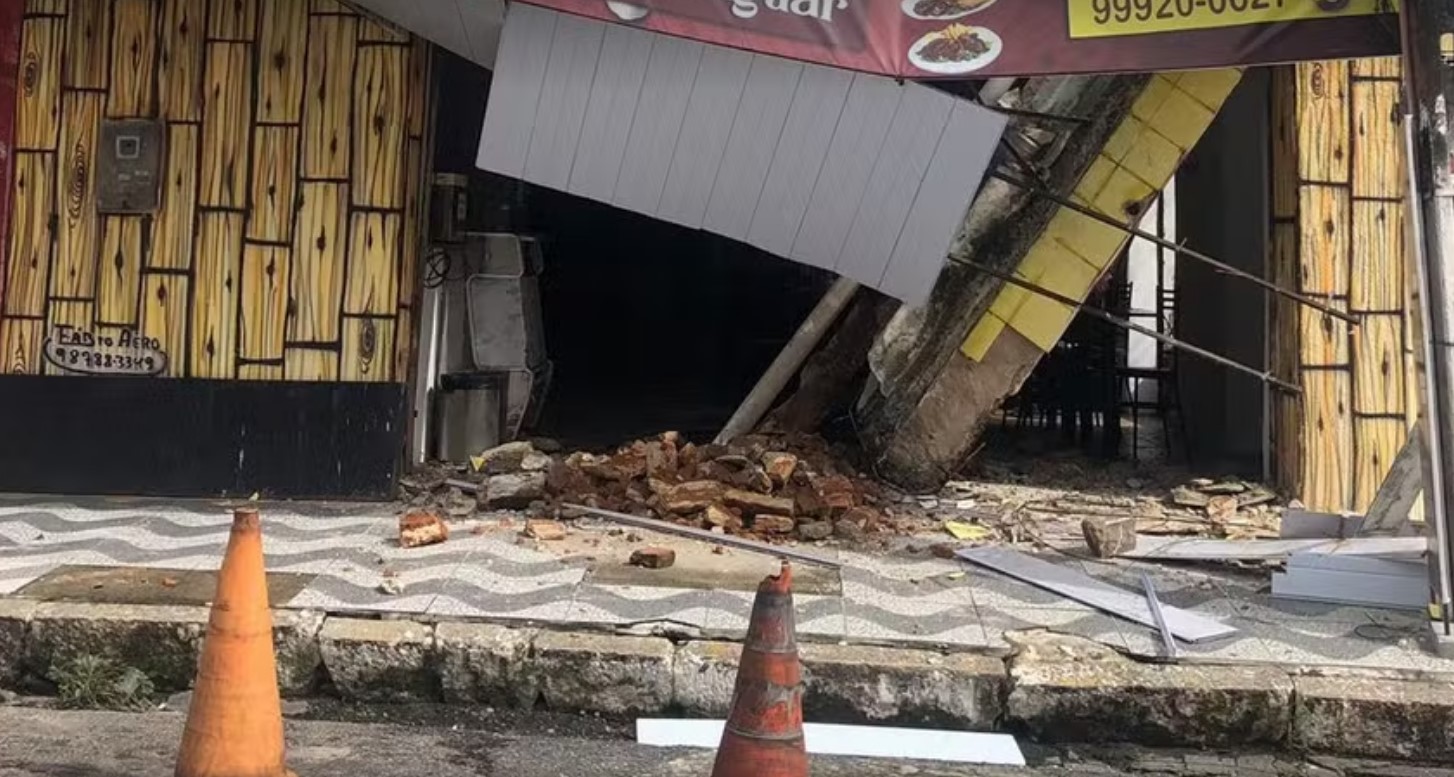 “Quando fui abrir a segunda porta de rolo, notei que começou a cair uns fragmentos da estrutura, de cimento. Quando a gente se afastou, o teto veio abaixo”, disse.