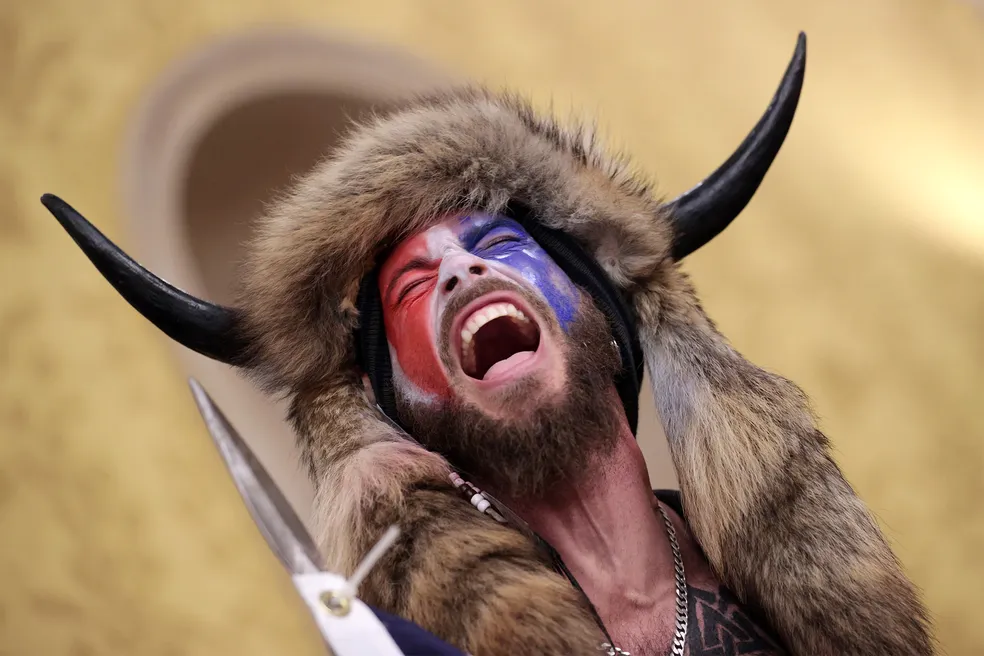 Prestes a ser julgado por tentativa de golpe de Estado, Bolsonaro, que está em prisão domiciliar, foi retratado com o rosto pintado com as cores do Brasil e com um chapéu igual ao que usava o “viking do Capitólio”, um dos apoiadores extremistas do presidente dos Estados Unidos, Donald Trump, durante a invasão ao Congresso americano em 2021.