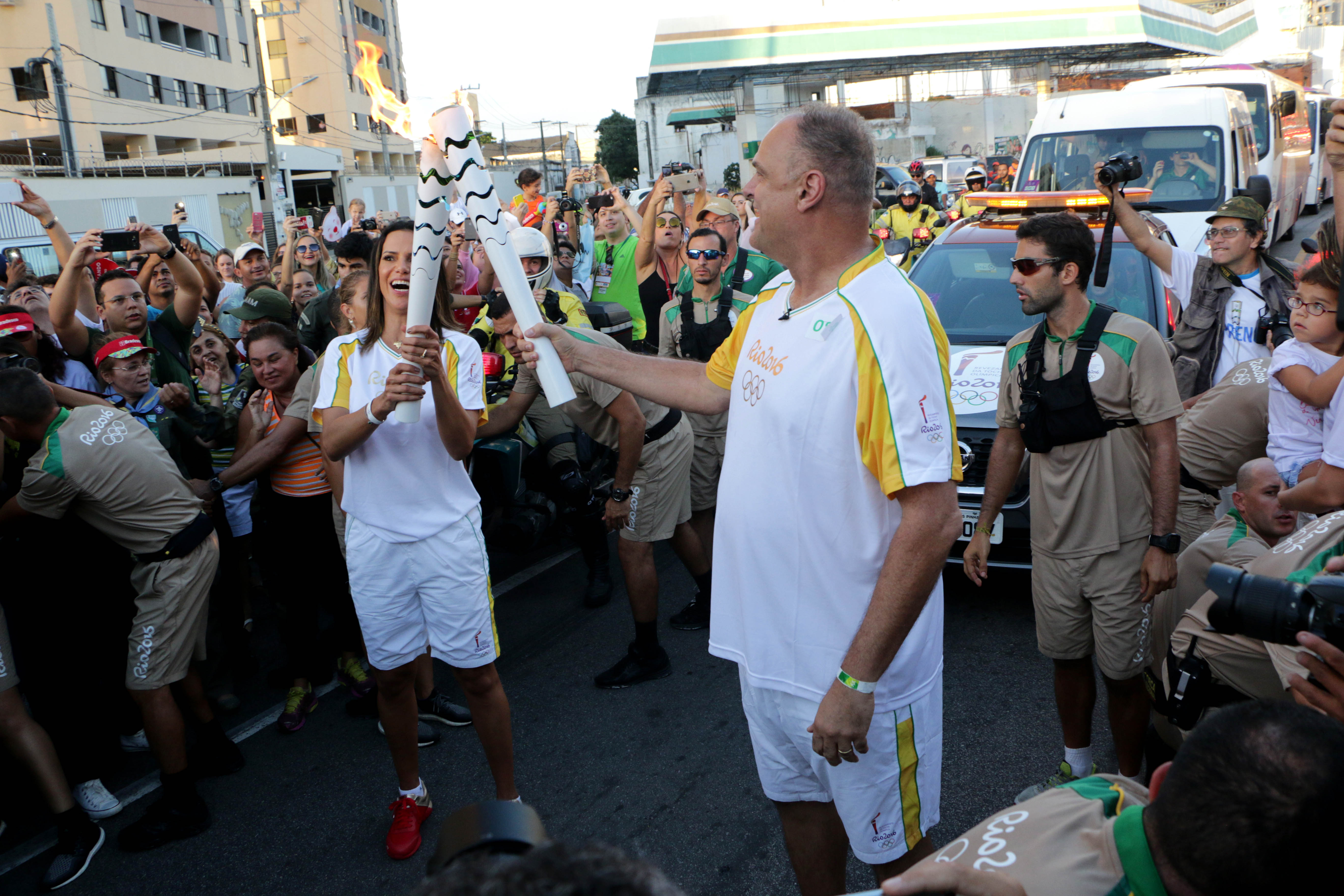 04/06/2016 - PREFEITURA DO NATAL - Passagem da Tocha Olímpica em Natal --A atleta Virna e oscar schmidt, durante o revesamento da tocha Olímpica em Natal - Foto: Alex Régis/ Secom