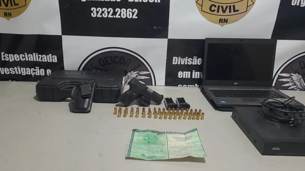 Na residência do homem, os policiais encontraram uma pistola 9mm municiada, registrada em nome de uma parente que também responde processo criminal. O homem também recebeu voz de prisão em flagrante e teve um carro e uma motocicleta apreendidos.