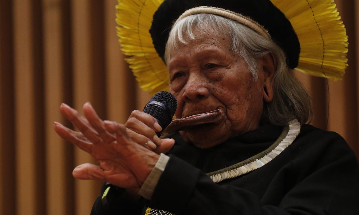 Aos 92 anos de idade, o Cacique Raoni é uma autoridade quando o assunto é preservação da natureza e defesa dos direitos de povos indígenas. Durante a Semana do Meio Ambiente (Semeia), no Museu do Amanhã, Rio de Janeiro, ele falou sobre o desastre climático no Rio Grande do Sul, atingido por chuvas fortes, inundações e deslizamentos. Segundo Raoni, se quiser evitar novas tragédias, a humanidade precisa refletir sobre a própria responsabilidade em provocar extremos da natureza.