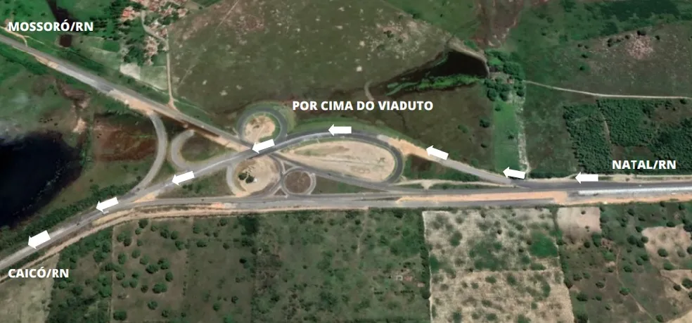 Já aqueles que trafegam no sentido Mossoró – Currais Novos deverão utilizar a nova alça que existe antes do viaduto na BR-304 e acessar a BR-226 no desvio de tráfego.