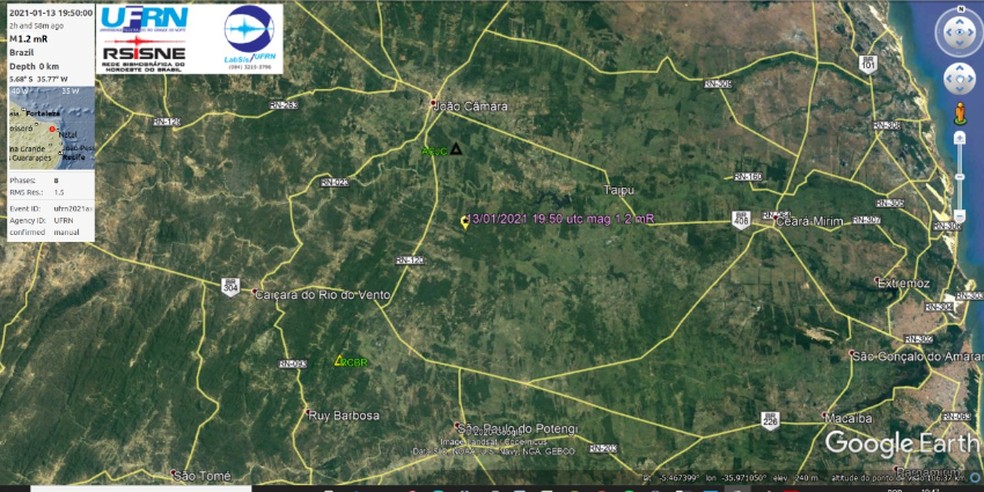De acordo com Laboratório de Sismologia (Labsis), da Universidade Federal do Rio Grande do Norte (UFRN), o evento sísmico aconteceu às 19h50. Segundo o laboratório, não há registros de que os moradores do município “tenham ouvido ou sentido algo”.