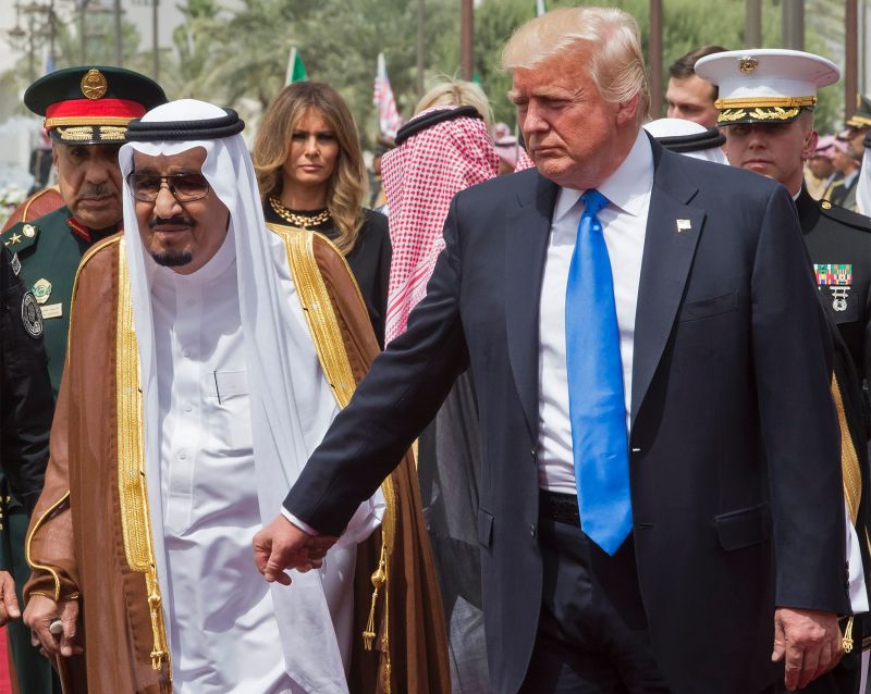 O presidente americano Donald Trump desembarcou ontem no aeroporto internacional Rei Khaled de Riad, na Arábia Saudita, primeira etapa de sua primeira viagem ao exterior desde que assumiu o poder em janeiro, que o levará ainda a Jerusalém, Belém, Roma, Bruxelas e Sicília. O rei Salman da Arábia Saudita apertou a mão de Trump e de sua esposa, a primeira-dama Melania e acompanhou o casal presidencial até o salão de honra do aeroporto, onde sentou-se com Trump a sua direita e Melania a sua esquerda. Donald Trump se reuniu com autoridades sauditas e neste domingo pronunciará um discurso sobre o islã diante de quase 50 governantes árabe-muçulmanos.