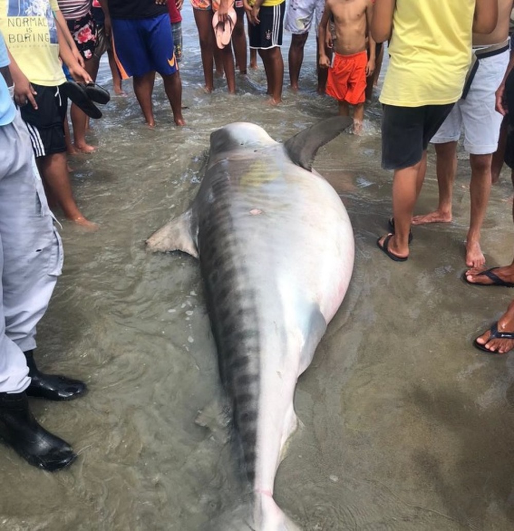 Um tubarão-tigre de 2,94 metros de comprimento morreu na manhã dessa quinta-feira (2) na Praia do Rosado, no município de Porto do Mangue, litoral do Rio Grande do Norte.