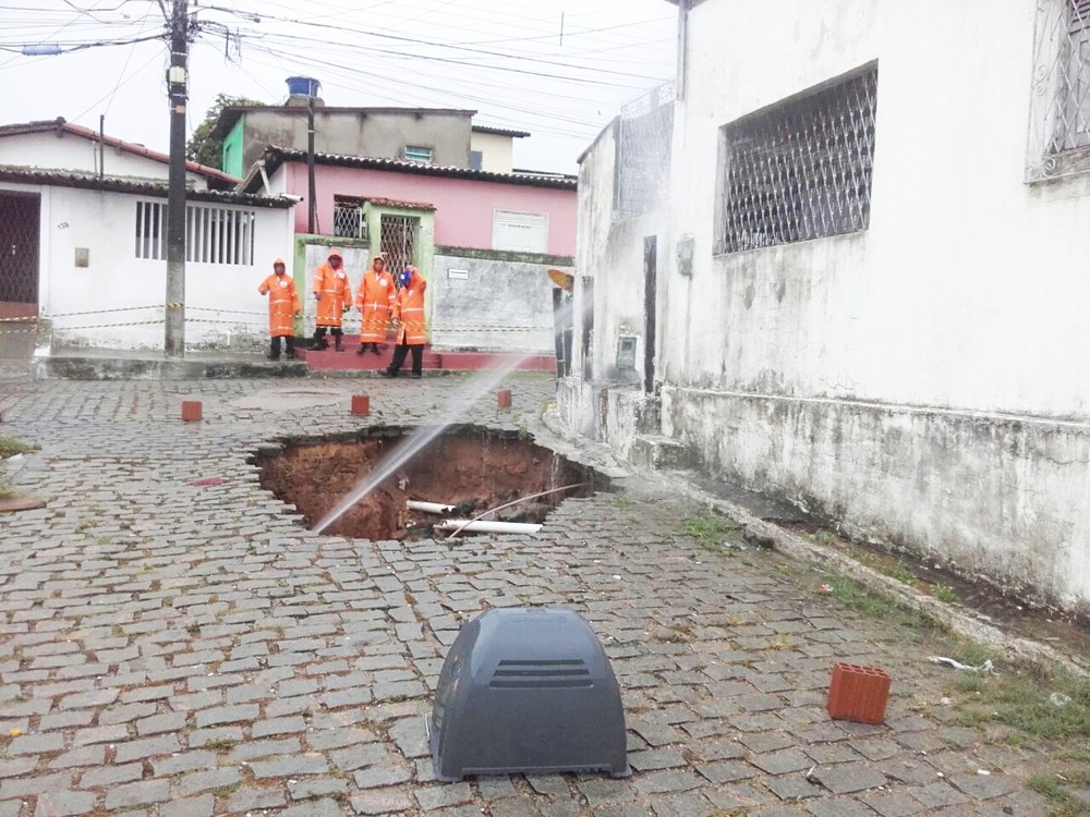 Moradores da rua Felipe Camarão, no bairro Igapó, na Zona Norte de Natal, estão preocupados. É que um enorme buraco foi aberto no meio da rua em razão do rompimento de um encanamento durante a madrugada desta sexta (30). Nenhuma casa foi interditada até o momento, mas a Defesa Civil do município pediu aos residentes mais próximos que procurem abrigo em casas de amigos ou parentes.