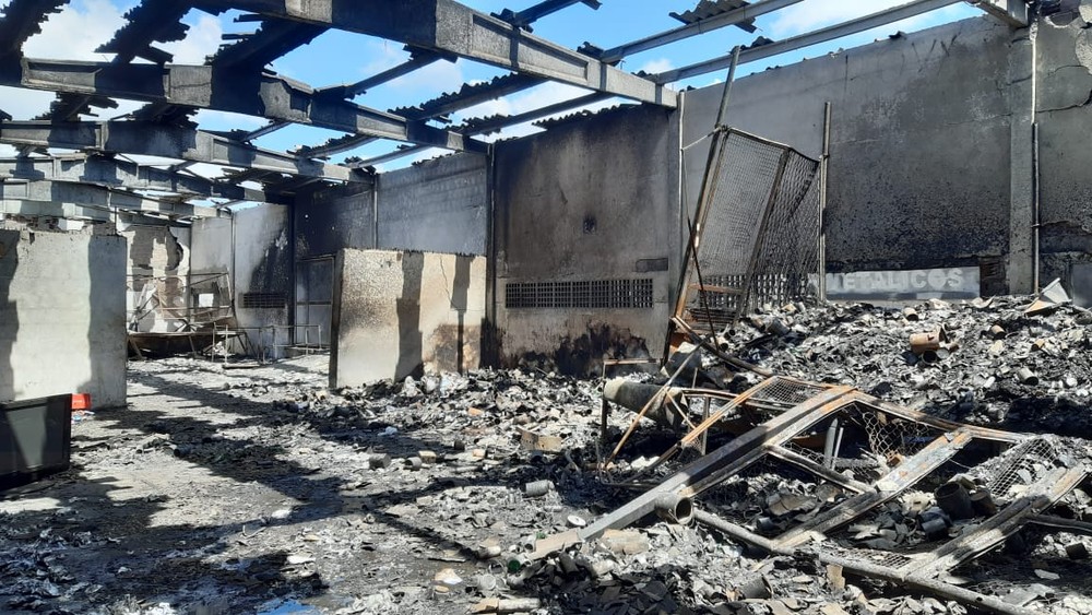 Nesta terça-feira (29), os trabalhadores voltaram ao local, para limpar as cinzas e ver o que poderia ser recuperado. Após o fogo, também houve saques. Só sobraram os fios de cobre.