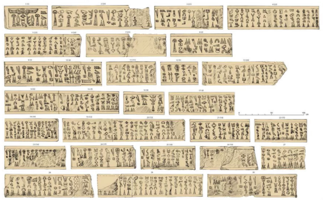 A inscrição em calcário de 35 centímetros de altura e cerca de 27 metros de extensão encontrada em 1878 onde hoje é a Turquia é o maior hieróglifo conhecido da era de bronze. O arqueólogo francês Georges Perrot, à época de sua descoberta, teve a astúcia de copiar detalhadamente as inscrições, pois essa pedra viria a ser usada posteriormente como parte da fundação de uma mesquita. Trata-se de uma escrita na língua luvita, falada na região da Turquia e arredores e extinta no ano 600 a.C.