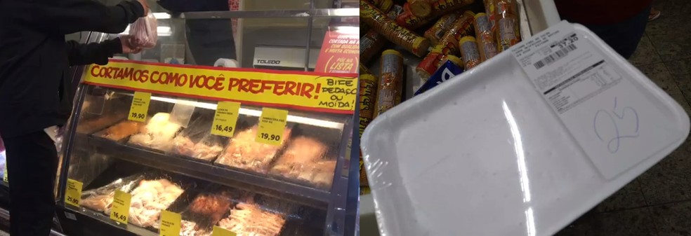 Nessa segunda (18), o Portal g1 esteve na unidade do Cambuci, na região central de São Paulo, e verificou uma tática similar. Ao solicitar meio quilo de fraldinha, o cliente só recebeu a etiqueta. Depois do pagamento da compra, a funcionária do caixa foi buscar a carne no açougue.