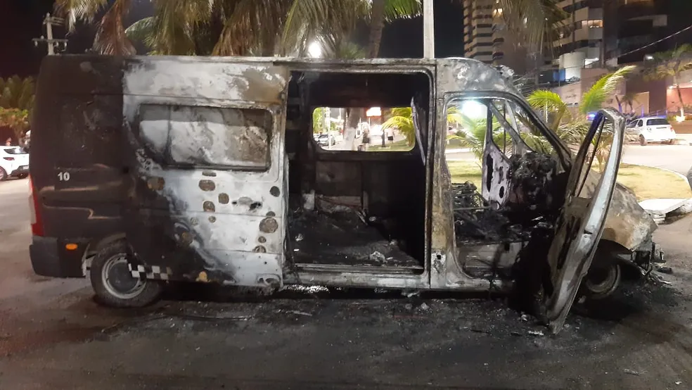 Uma van da Polícia Militar pegou fogo na noite desta segunda-feira (6) no bairro de Areia Preta, na Zona Leste de Natal. O automóvel ficou totalmente destruído. De acordo com a corporação, um princípio de pane elétrica teria causado o incêndio.