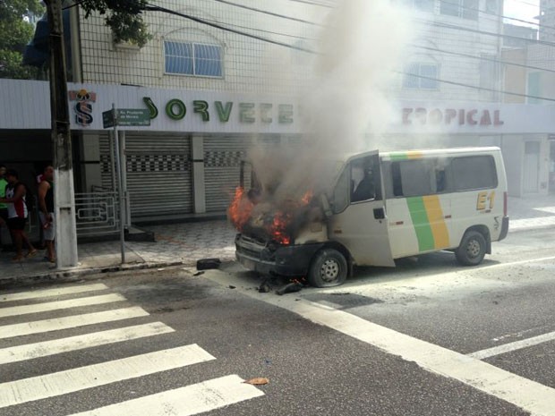 Uma van que faz transporte alternativo pegou fogo na manhã deste sábado (29) em Natal e assutou os passageiros que estavam dentro do veículo. O incidente aconteceu na avenida Prudente de Morais, no trecho que corta o bairro de Petrópolis, na zona Leste da cidade. O Corpo de Bombeiros foi acionado e controlou o incêndio. Ninguém ficou ferido. Segundo o portuário Edilson Rebouças, que testemunhou o incêndio, a van começou a pegar fogo por volta das 11h. “Estava dirigindo e, de longe, vi a fumaça. Me aproximei e vi que o motor da van estava quente. O motorista havia parado o carro e mandado os passageiros descerem. De repente, o fogo começou a se alastrar”, relatou. Os bombeiros ainda não sabem o que provocou o aquecimento do motor da van. O veículo continua no local para ser periciado.