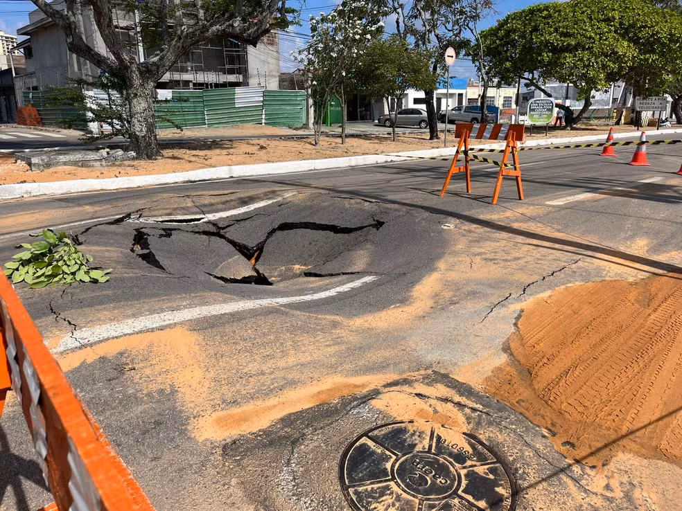 Um vazamento na rede de água da Companhia de Águas e Esgotos do Rio Grande do Norte (Caern) provocou a abertura de um buraco e a interdição de um trecho da avenida Prudente de Morais, no bairro de Candelária, na Zona Sul de Natal, nesta quinta-feira (1º).