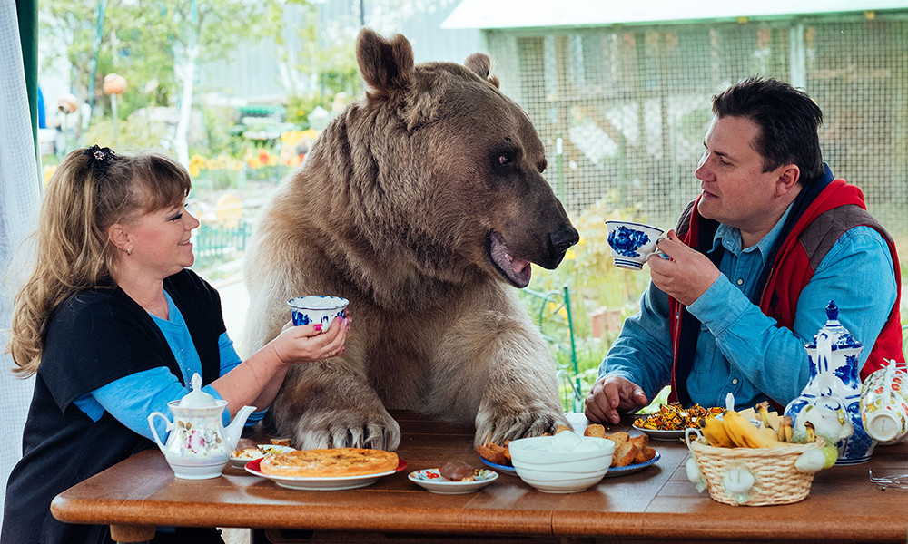 É aqui que entra o casal Svetlana e Yuriy Panteleenko, de Moscou, na Rússia, que decidiu adotar o animal e dar-lhe um lar. 23 anos e mais de 130 quilos depois, o urso virou membro da família, cujas tarefas preferidas são sentar no sofá vendo televisão, aninhado com os donos, ou regar as plantas.