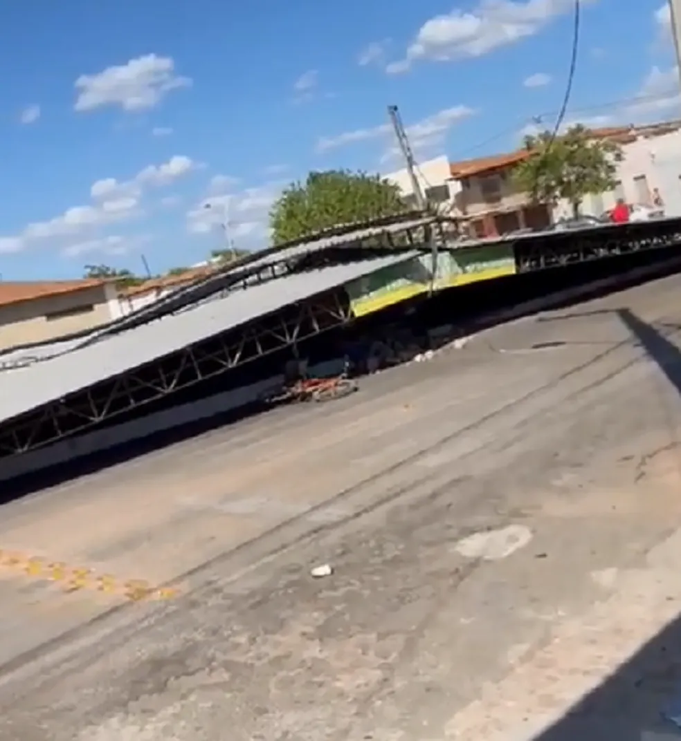 Uma “fortíssima rajada de vento”, segundo a prefeitura, derrubou uma estrutura metálica usada como cobertura da área onde ocorre a feira livre na cidade de Pedro Avelino, na região Central potiguar. O caso aconteceu no início da tarde desta terça-feira (8).