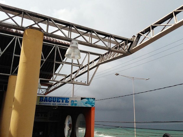 Uma forte ventania levantou parte do telhado do Centro de Artesanato da Praia dos Artistas em Natal nessa terça-feira (7), por volta das 14h40. Ninguém se machucou, já que não houve desabamento, mas a chuva que caiu em seguida se infiltrou pelo teto das lojas, feitos de PVC.