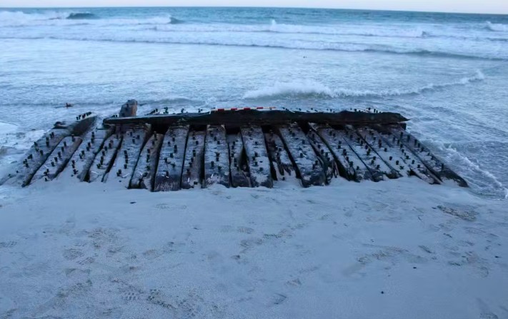 A tempestade que expôs os destroços retirou uma camada de areia que os protegia há séculos. Moradores usaram tratores e reboques para transportar cerca de 12 toneladas de carvalho da praia até o centro de patrimônio local, onde as peças estão sendo conservadas em tanques de água doce.