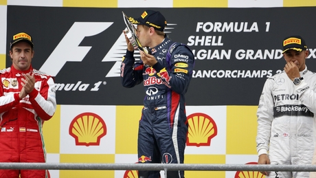 O alemão Sebastian Vettel (Red Bull) venceu o Grande Prêmio da Bélgica, disputado na manhã deste domingo, e manteve a primeira colocação do Mundial. Já o espanhol Fernando Alonso (Ferrari) retomou a vice-liderança do campeonato ao chegar no segundo posto em Spa-Francorchamps. Com a quinta vitória na temporada, a 31ª de sua carreira, Vettel contabiliza um total de 197 pontos ganhos. A oito etapas do final do Mundial com o Grande Prêmio do Brasil, Alonso tem 151 pontos e retoma o segundo posto do finlandês Kimi Raikkonen (Lotus), que não completou a corrida belga. Mais uma vez, o brasileiro Felipe Massa (Ferrari) exerceu papel de coadjuvante na corrida e terminou apenas na sétima colocação. No Grande Prêmio da Itália, marcado para o próximo dia 8 de setembro, o piloto terá a oportunidade de mostrar serviço diante dos fãs de sua equipe.