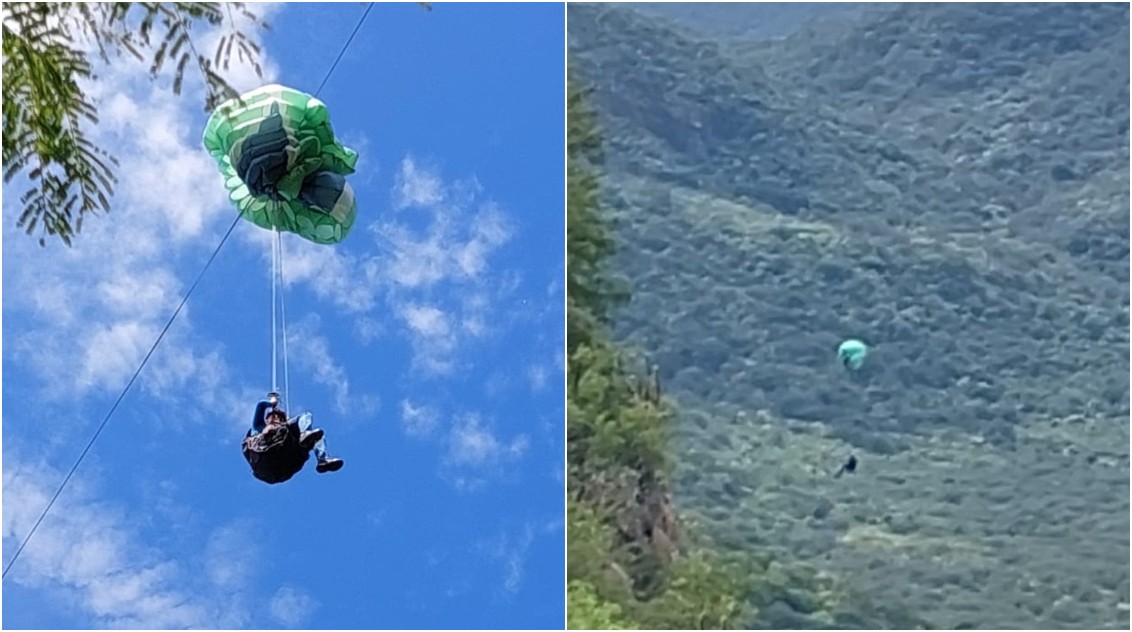 Para o resgate, foi necessária a utilização de um helicóptero da Força Aérea Brasileira. No vídeo, é possível ver que um socorrista desce do helicóptero, segurado por uma corda, e tenta desvencilhar o parapentista para tirá-lo em segurança.