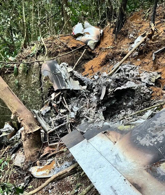 A queda do avião aconteceu na noite de segunda-feira (3). Os destroços foram localizados nesta terça-feira (4) em uma área de mata fechada e de difícil acesso, pelo Corpo de Bombeiros.