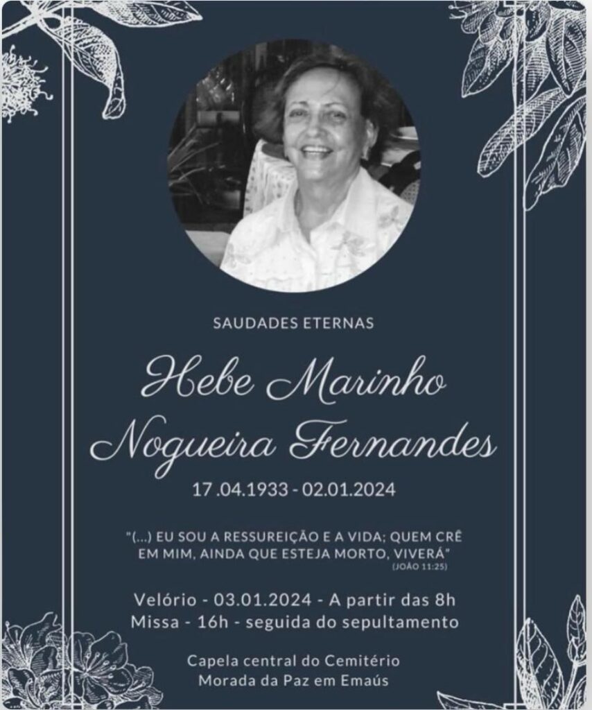 Nós que fazemos o Blog Ponto de Vista prestamos nossos sentimentos aos familiares e amigos de Hebe Marinho Nogueira Fernandes, falecida hoje (02).