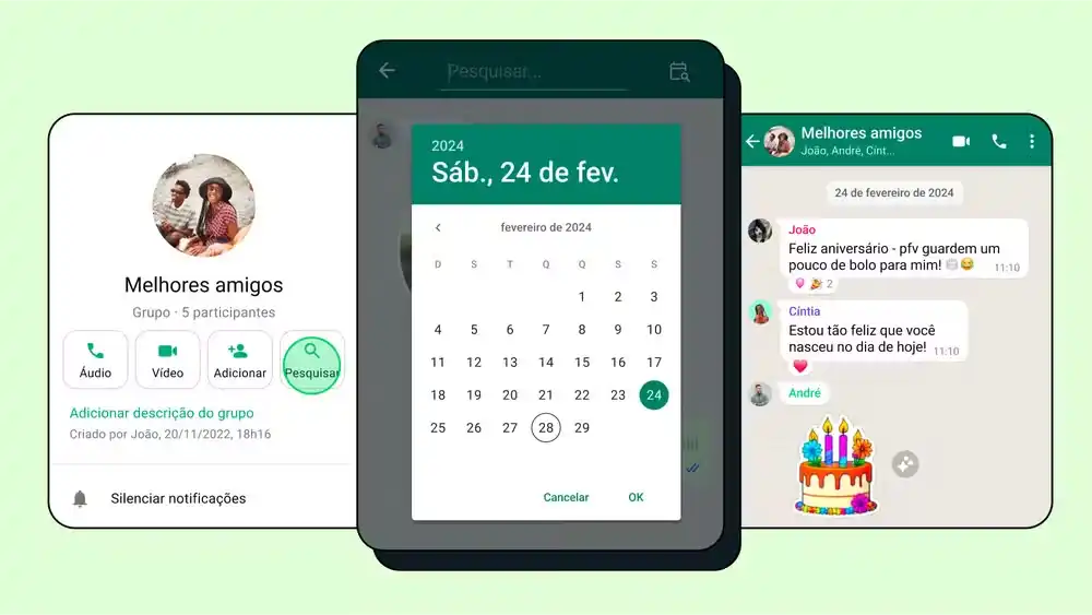 “Encontrar aquela mensagem específica nas suas conversas no WhatsApp ficou ainda mais fácil com a função de procurar por data. Agora você pode simplesmente escolher uma data e ir direto para todas as mensagens enviadas naquele dia”, explica o WhatsApp em comunicado.